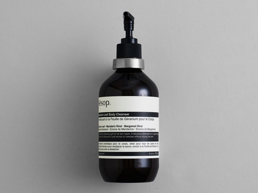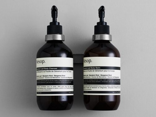 手作業で型に注がれたアルミニウムの Aesop Bottle Holder は Aesop のブラスオイルバーナーをデザインしたヘンリー・ウィルソンがデザインしています。ヘンリー・ウィルソンは Aesop と親しい関係でありシドニーの店舗のインテリアをデザインしました。
