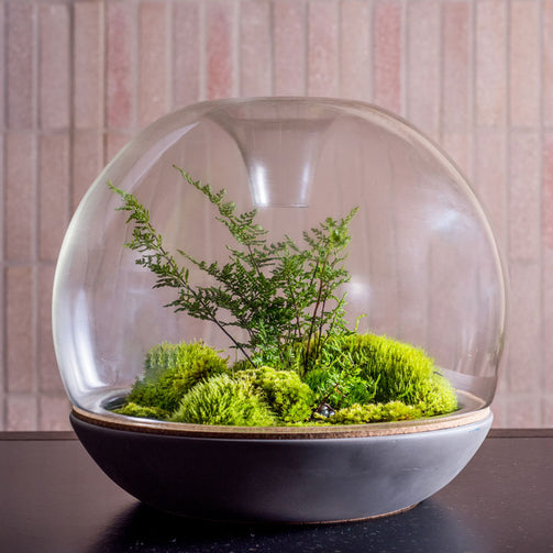 The dome has been carefully designed with an opening in the top to enable watering and airflow, making it condusive to both temperate and tropical plants. Succulents also flourish with minimal watering.