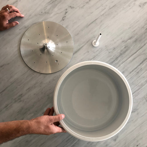 Skye Pot is a freestanding, self watering pot that stops your plants having wet feet and allows air to filtrate the soil. The straw aerates the root system and water reservoir.