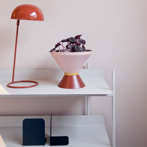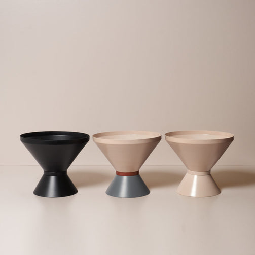 Australian designed tone vessel made from spun metal, powder coated and ideal for planters or sculptural vases with an indoor or outdoor use. Designed by Cindy-Lee Davies for Lightly in 2018.