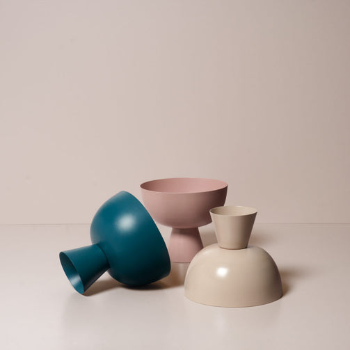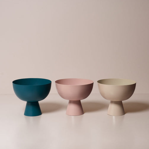 Australian designed goblet vessel made from spun metal, powder coated and ideal for flowers or planters with an indoor or outdoor use. Designed by Cindy-Lee Davies 2019.