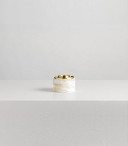 オニキスと真鍮で作られたキャンドルホルダー。エッセンシャルオイルのディフューザーとしての一面も発揮します。