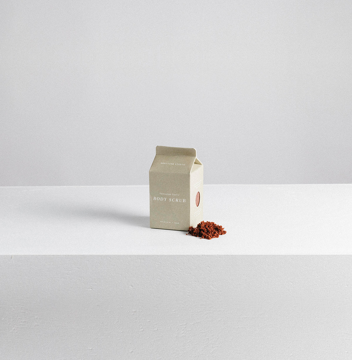 牛乳パックのようなカートンにオーストラリアネイティブのボディスクラブが入っています。ガラス瓶の詰め替え用として使うこともできます。