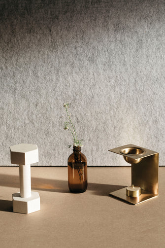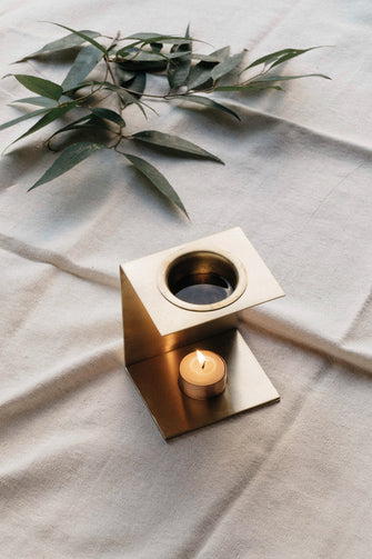 A minimal Oil Burner design crafted from brass. This designer oil burner is made from 100% brass & includes essential oil & Australian beeswax candle. All you need is Fire & water.