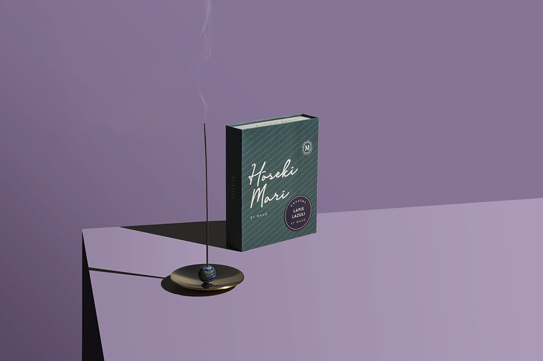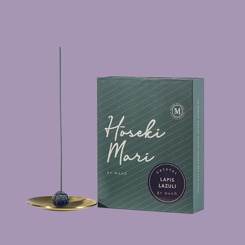 A hand-crafted brass dish paired with exquisitely selected semi-precious stones combines to create the signature Hōseki mari by MAHŌ for an ethereal burning experience.