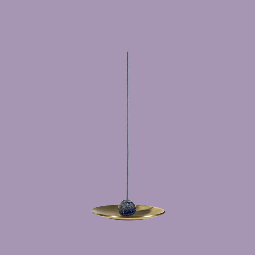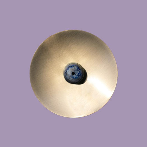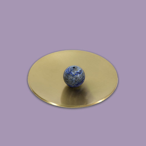 ハンドメイドのブラスディッシュと厳選された半貴石がペアになったインセンスホルダー。