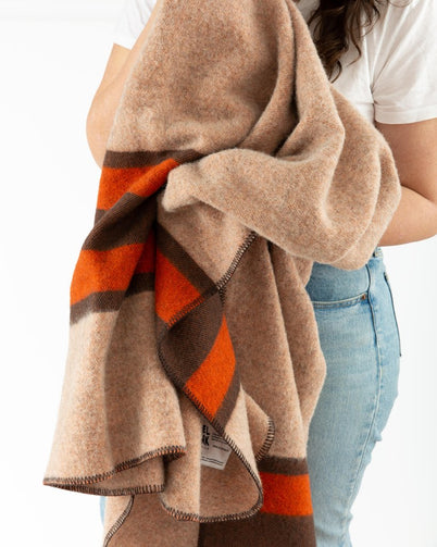 Glow is inspired by a '70s colour palette and staring deeply into a campfire at night. Made of deadstock upholstery yarn at a mill in Geelong, Victoria, this durable blanket is perfect for indoors and out. Take picnicking, on an adventure or stay cosy at home with Seljak Peak.