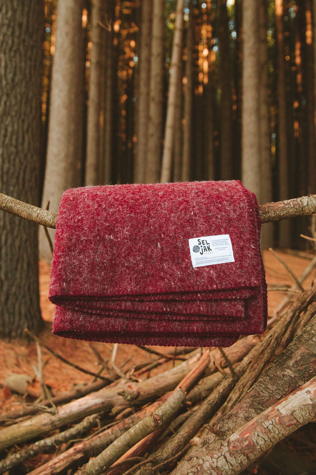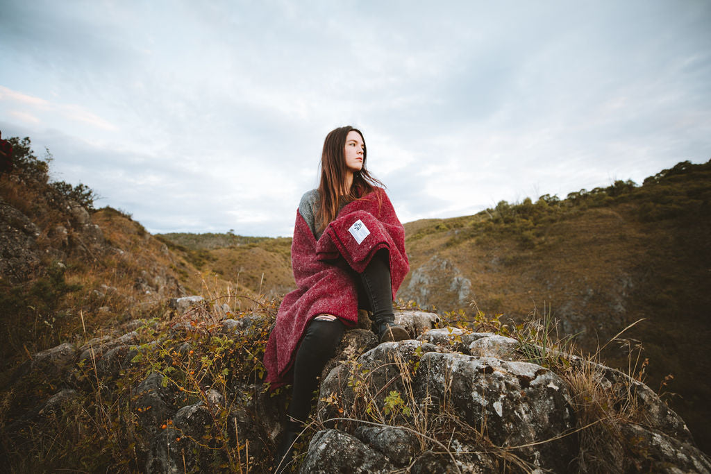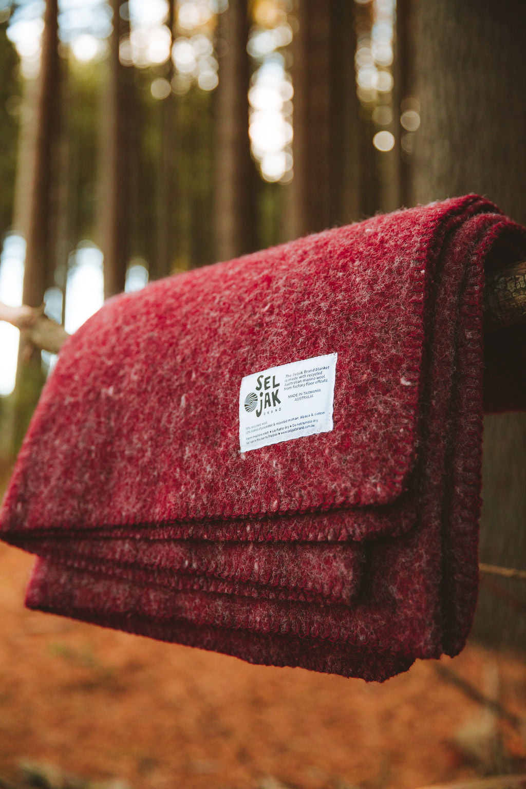 The Seljak Pinot blanket is a luxurious, durable blanket for adventuring and homemaking, and everything in between. The Pinot is a deep cherry red like the famous Tasmanian wine.. Because each blanket is made with offcuts reflecting the production run before it, they may vary slightly in colour and texture.