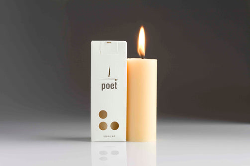 The Poet candle creates its own story as it burns… a wax sculpture in motion, a perfect balance of wax, wick, light.