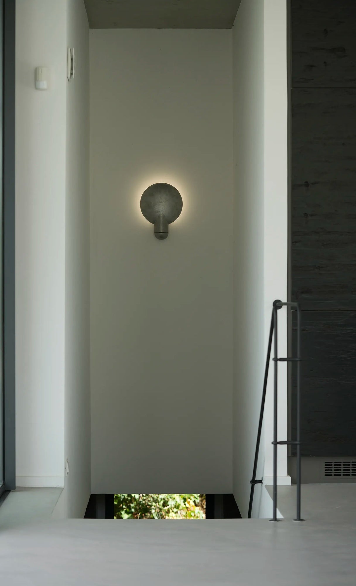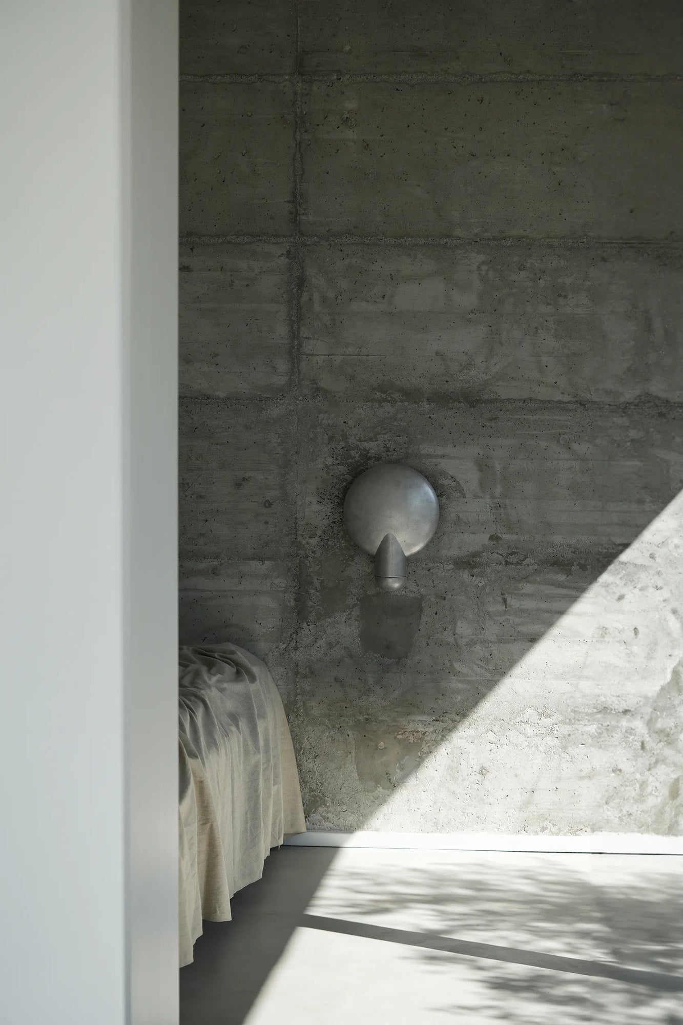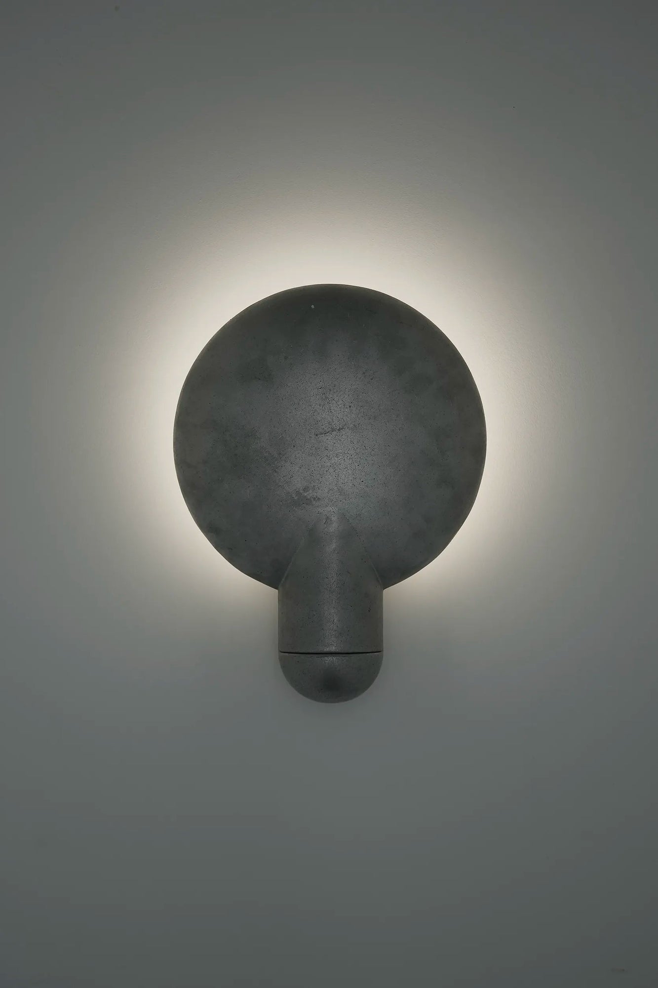 Sandwiched between the two aluminium components, the light source is projected onto the concave backing. The light follows the gentle bowl of the dish and is directed outward, reflecting a warm glow of light onto the opposing surface.