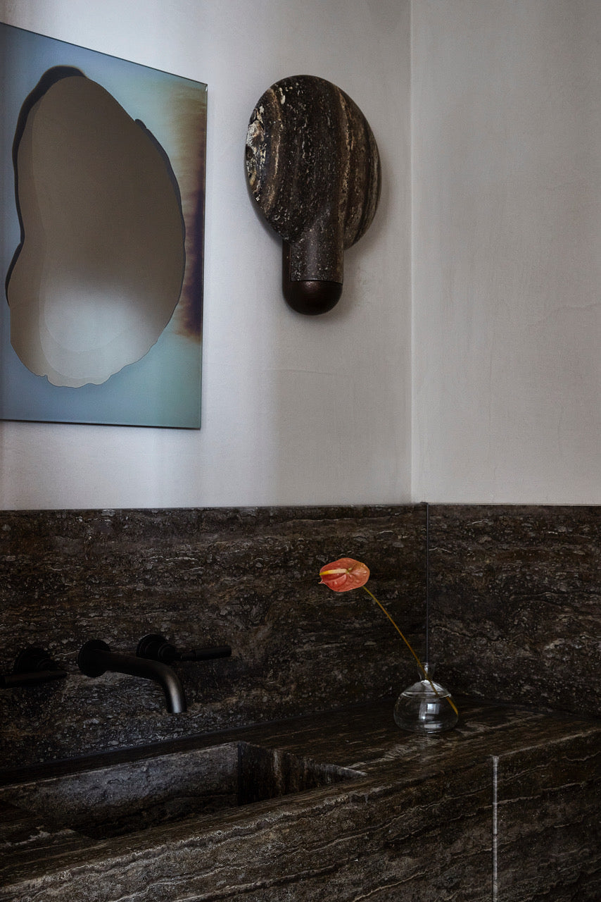 オーストラリアのデザイナー、ヘンリーウィルソンによって製作されたこの燭台はカラカッタ大理石で作られており、彫刻のように生活に溶け込むように設計されております。