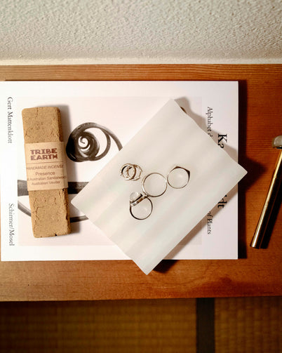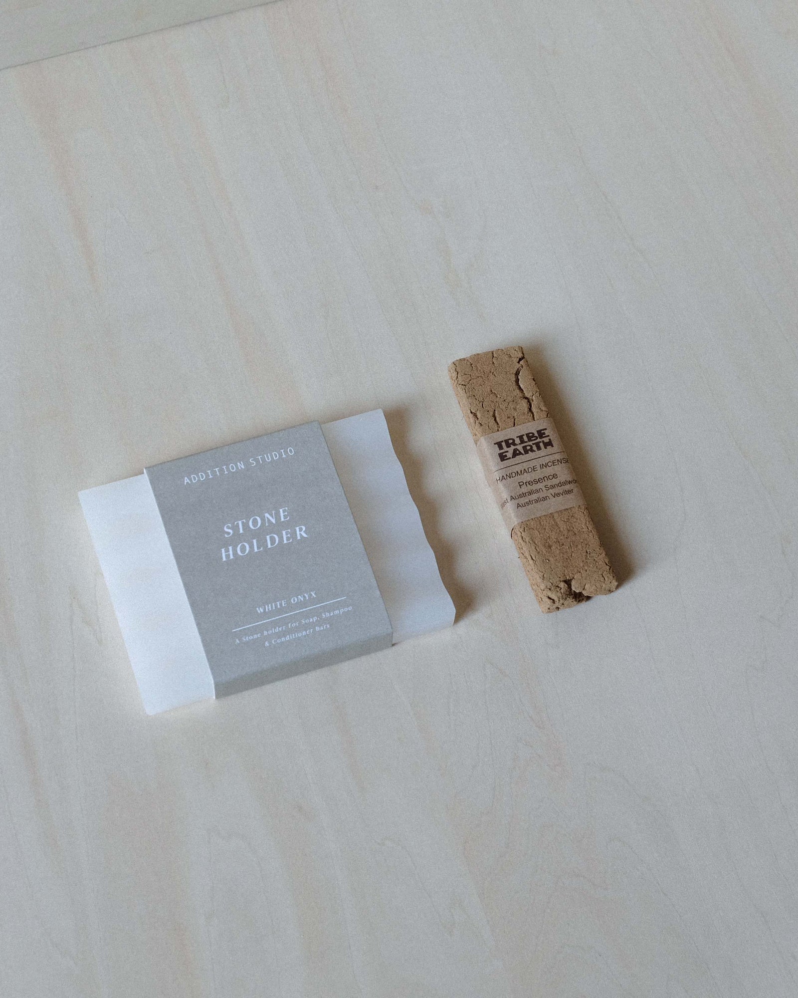 オーストラリアで採取された植物をブレンドし、一つ一つ丁寧に作られたハンドメイドのお香〈Tribe Earth〉の中でも人気のさっぱりとした香りPresenceと、〈Addition Studio〉のストーンホルダーがセットになっています。こちらの2点を一緒に使うのもいいですし、ストーンホルダーは石鹸置き、アクセサリートレーとして使用するのも空間に素敵なアクセントを加えるアイテムとしてもおすすめです。